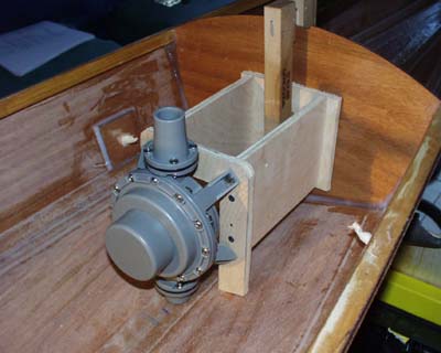 All the other articles involve plumbing and I was really trying to avoid any because I was already adding weight and anything I could do to reduce this was going to be a bonus and my size (12US) 45 Euro feet were already crowding the foot space! It was also clear I would need to get the pump in the same plane as my foot - which was approximately the mid point of the foot brace tracks. This meant bringing it towards me off the bulkhead. The forward bulkhead was going to need stiffening too to take the pounding from an emergency pump out. The two pictures above show the dry run mock up made of 3/8" ply and drywall screws.