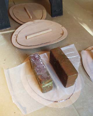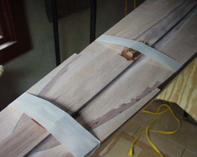 While waiting for items to cure we processed other parts - here the forward hatch covers which we taped onto the bending jig. Simpler and faster than the strip wood method in the build manual.