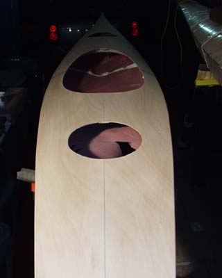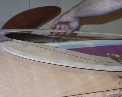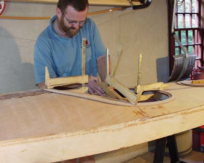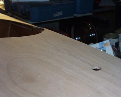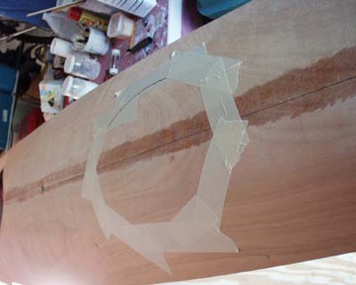 Remove tape from all over hull - Mark up the hatch openings then tape over them and firmly rub down your masking tape (which will prevent the ply edge bursting as you cut the holes)