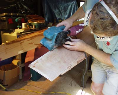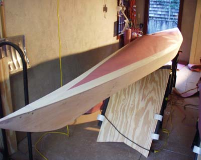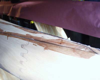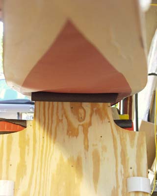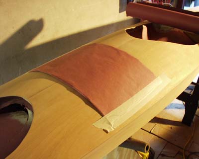 Paper padding to protect the deck when the boat is upside down in the saw horses for glassing.
