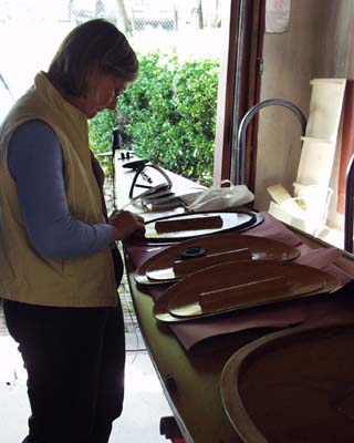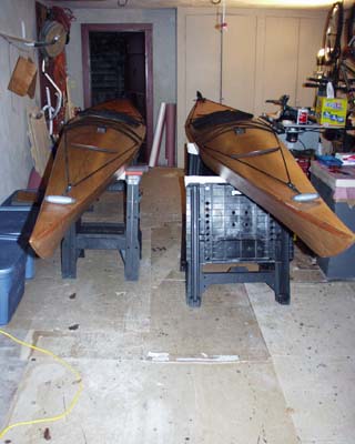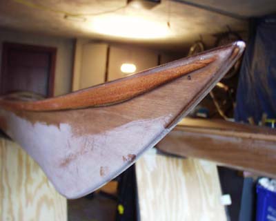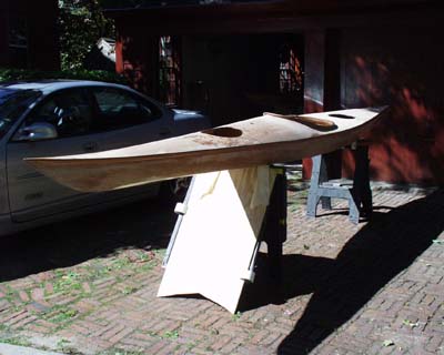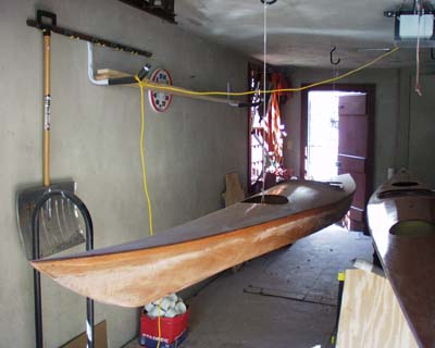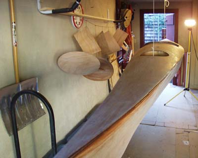 5 coats of one pot Polyurethane gloss was rolled on and tipped off every 12 hours and then allowed to harden. Then the boats were rubbed back, tack ragged and two coats of satin applied. I prefer satin varnish on the deck - less glare on the eye - but it's U/V resistance is not as good as gloss. Hence the gloss underneath.
