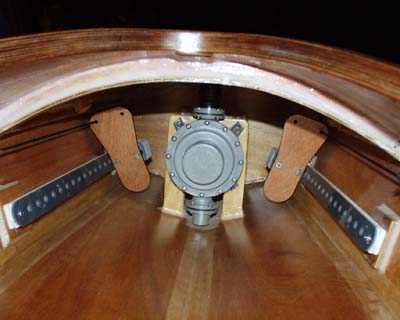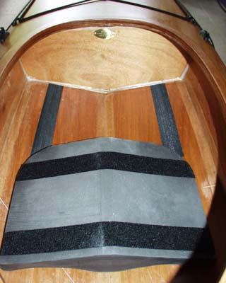 Velcro allows the seat pad to be adjusted. Note small brass build plate on the bulkhead. Go see your local engraver. Make sure it is solid brass and not plate which rusts after a few weeks.