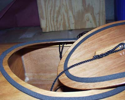 Remember those hatch strongbacks? Used to secure a safety line to inside the hatch. A hatch knocked off during a rescue is a disaster. A hatch knocked off and lost completely is probably the end of you. Fit safety lines so you have a chance of recovering and putting the hatch back on.